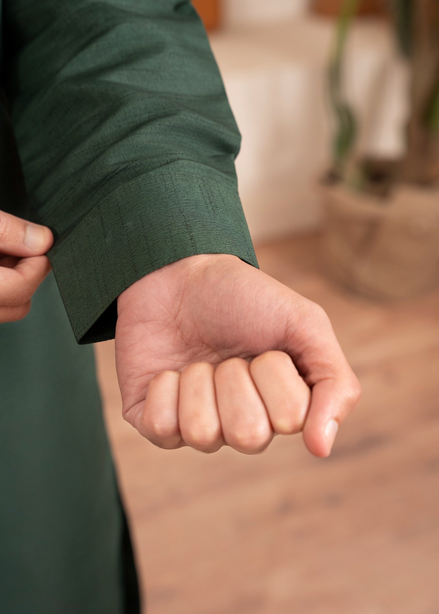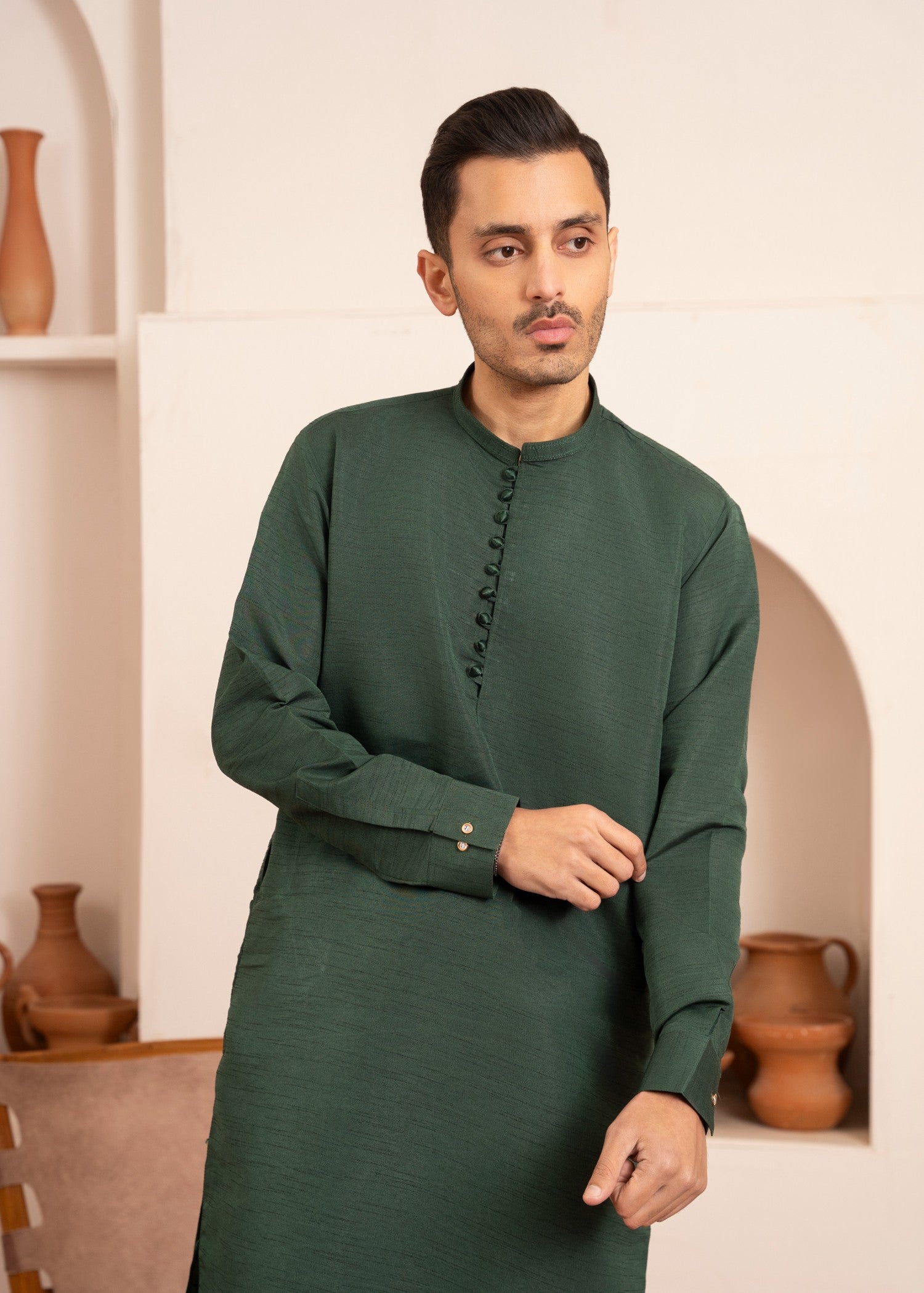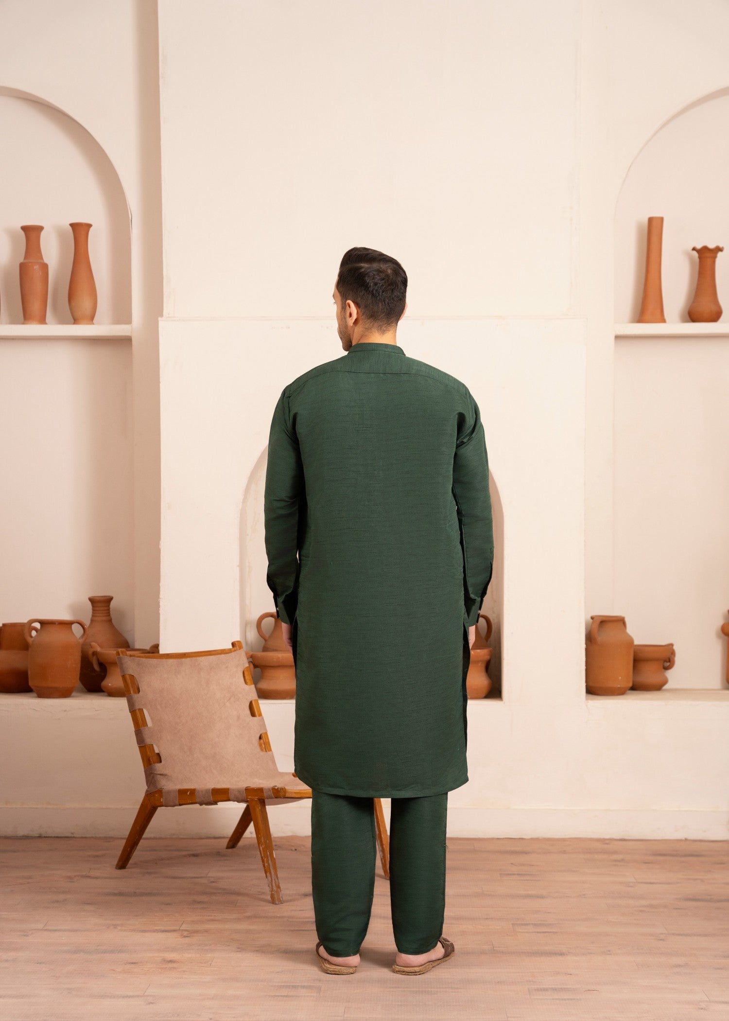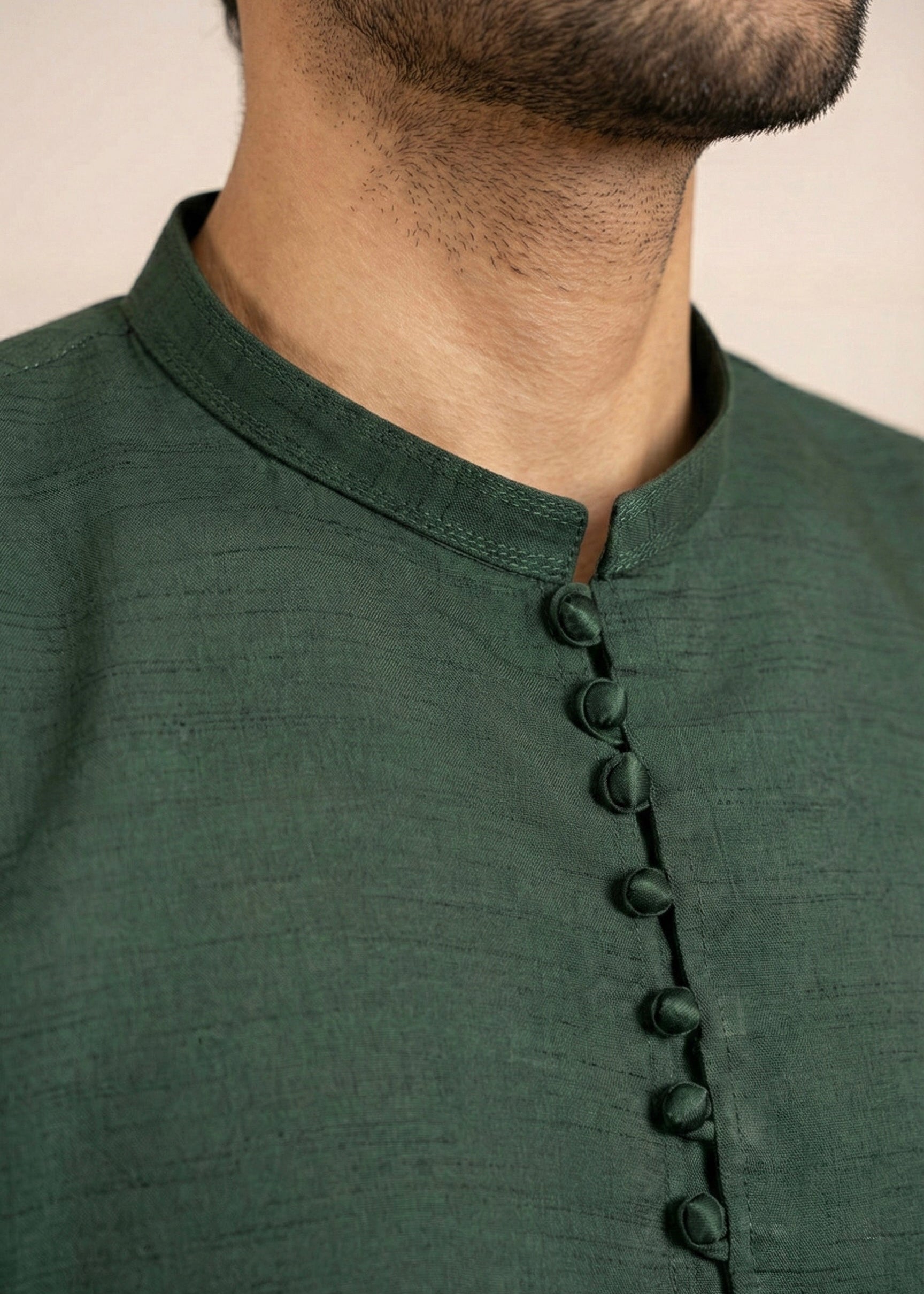 Dark green raw silk kurta set with a straight-cut top and straight trouser bottom—perfect for festive occasions, parties, and all-season elegant traditional menswear styling.