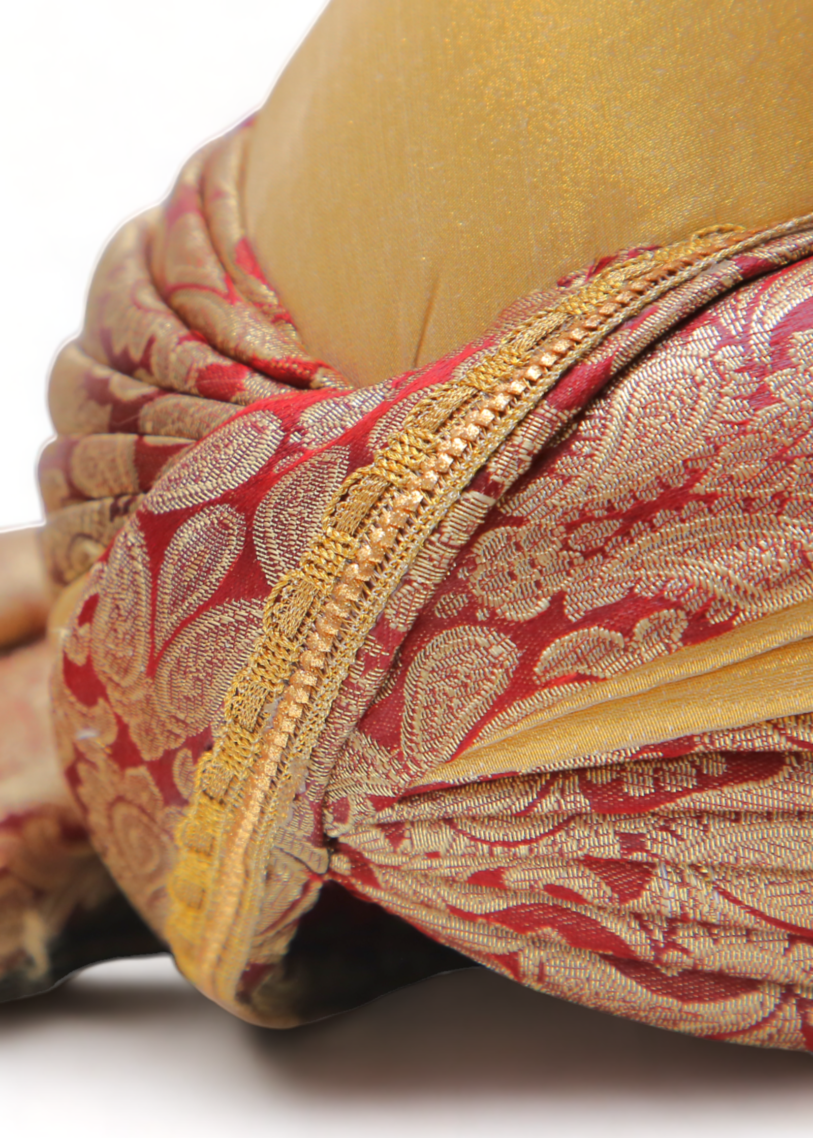 Elevate your traditional look with this sophisticated turban crafted from premium raw silk. Available in versatile skin and rich red tones, this piece combines timeless elegance with luxurious comfort. Raw silk's natural texture provides breathability and a refined drape, making it ideal for both formal occasions and everyday wear. The carefully selected color palette ensures effortless coordination with your existing wardrobe. Experience the understated luxury of authentic silk craftsmanship with every wear.