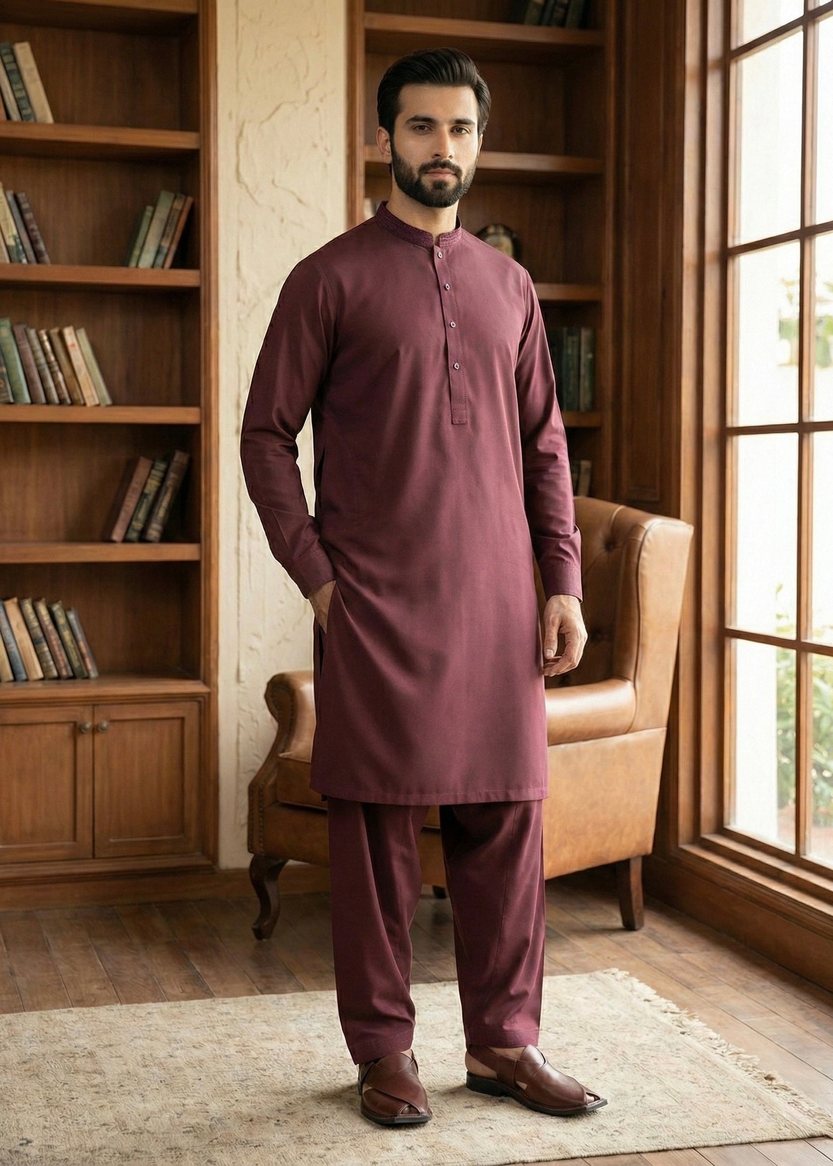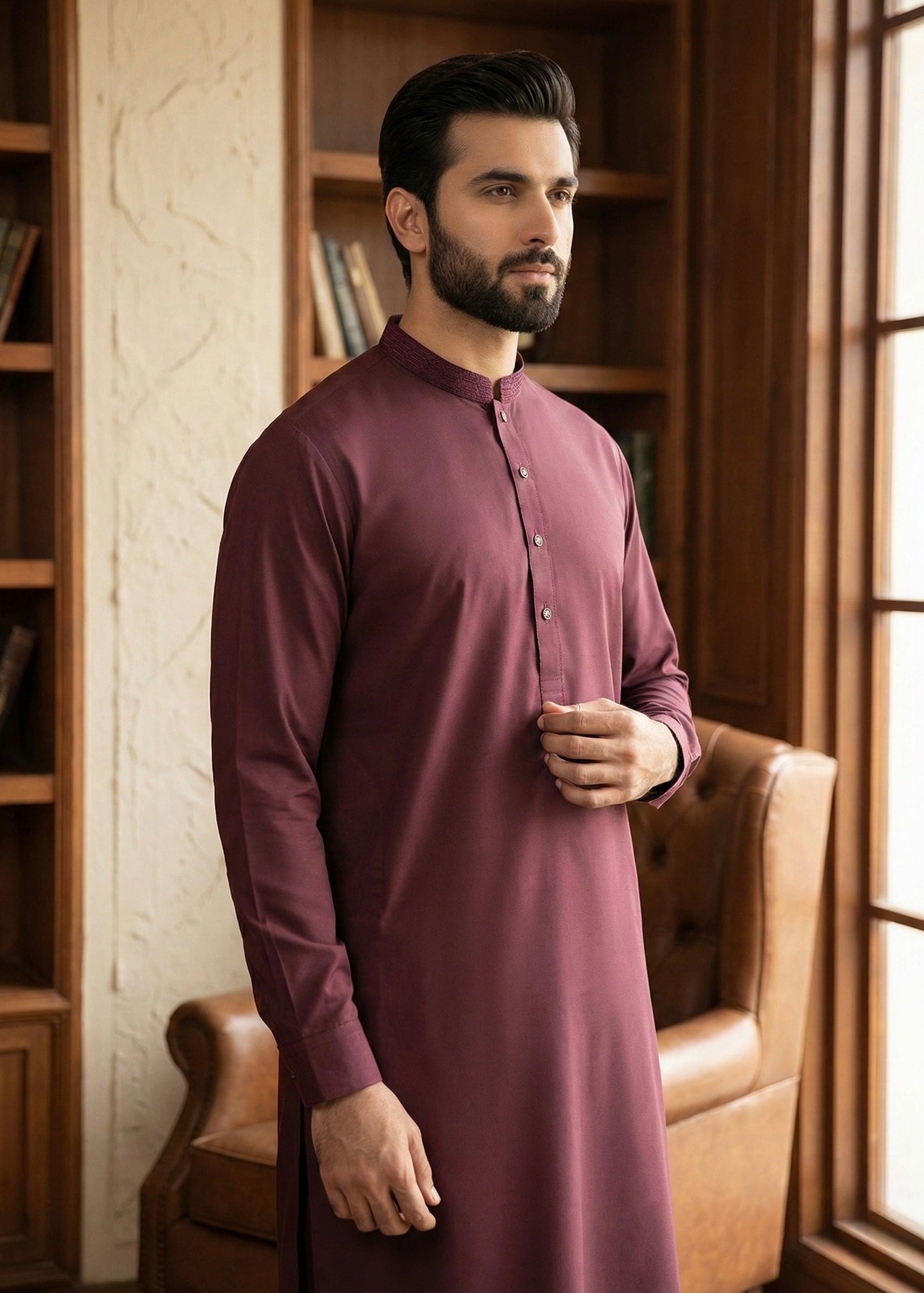 Layer Wash & Wear Shalwar Kameez Experience effortless elegance with this two-piece shalwar kameez crafted from premium wash and wear fabric. The sophisticated hue offers versatility for both casual and semi-formal occasions. Featuring a refined band collar design, this ensemble combines traditional styling with modern practicality. The wash and wear construction ensures minimal maintenance while retaining its shape and color vibrancy through repeated wear. Perfect for the contemporary Pakistani wardrobe, this piece delivers comfort without compromising on style.